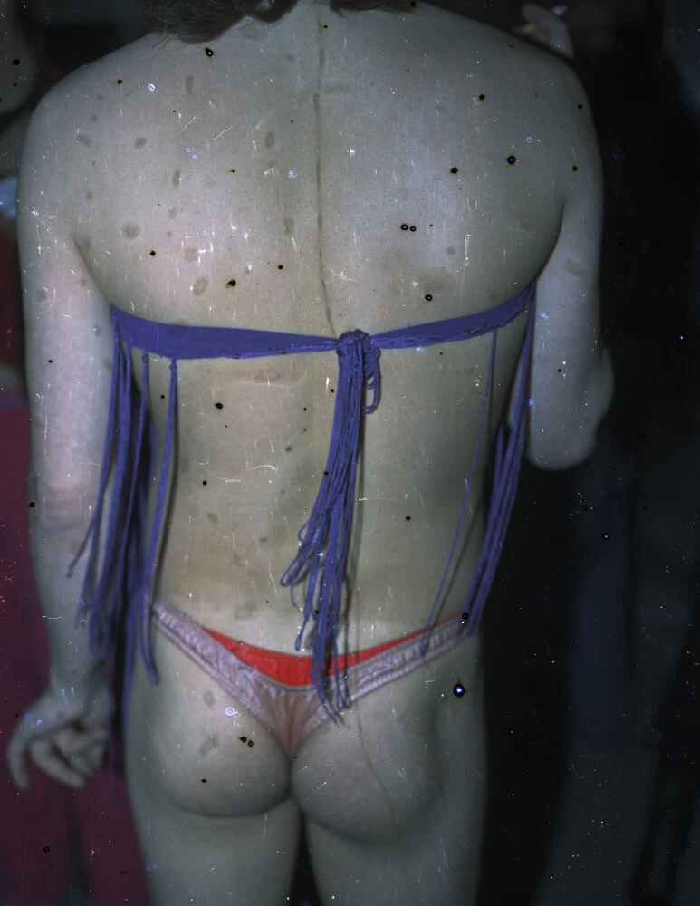 In this work, I try to distort the perception of reality offered by my medium in order to describe inner territories. Unstable and complex, my images depict a particular heaviness of being. I'm interested in internal storms caused by life's constraints, desires and pressures. To produce the images for this work in progress, my strategy is as follow: I prompt my models to execute a series of postures or actions, repeatedly and until exhaustion. For example, a man must pass through a wall or a couple must complete a series of kisses under a restrained time limit combined with the intensity of a night club strobe lighting. These constructed and absurd situations become a catalyst for authentic physical and emotional response, and I go from there. In the same fashion as chronophotography, strobe lights allow me to break down what is taking place in front of the camera to reconstruct a manipulated reality, with scrambled points of reference that can only exist in photography. This exploratory process of creating chaos opens the door to the realm of fantasy."